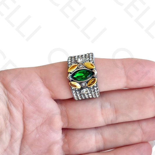 Preço normal €6,50Preço normalPreço unitário / porPreço de saldo €6,50Anel de Aço - 2 tons com brilhantes verdes