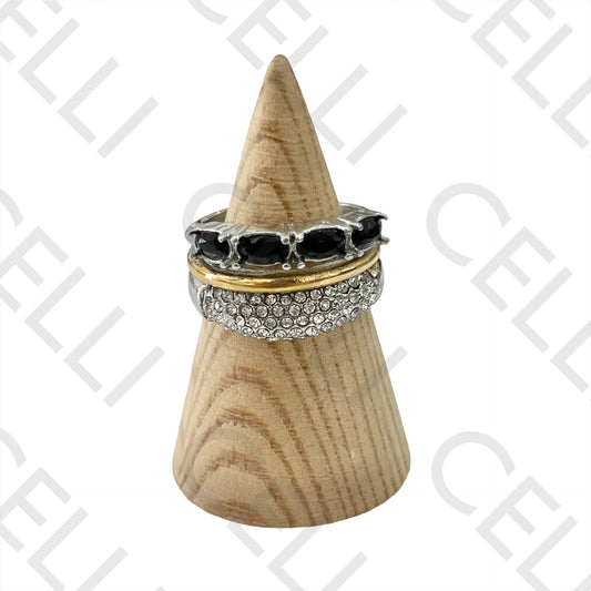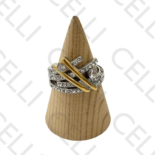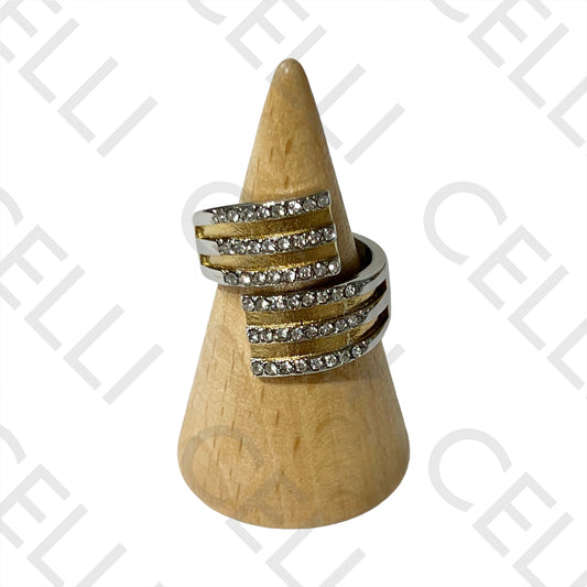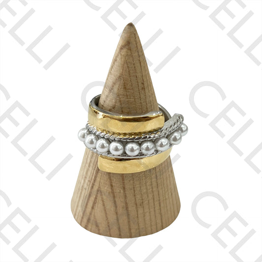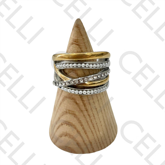 Anel de Aço (cor dupla) - pérolas e brilhantes