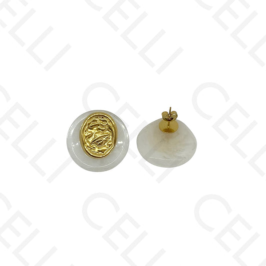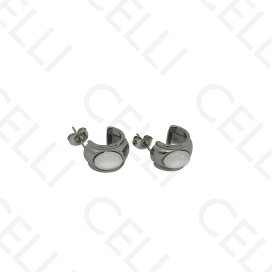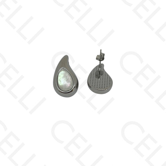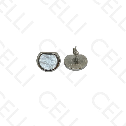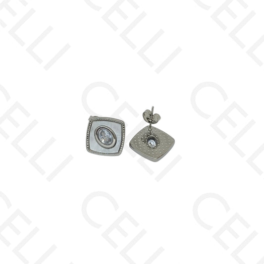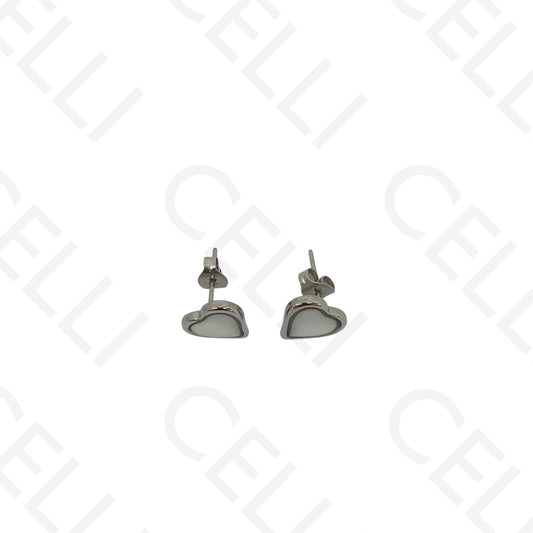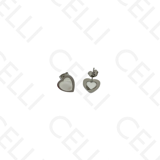• Brinco de aço - quadrado madrepérola com brilhante coração
