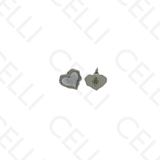 Brinco de aço - quadrado madrepérola com brilhante coração