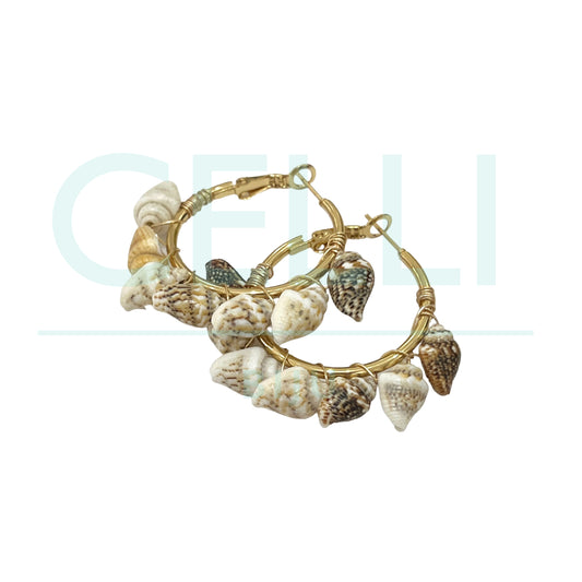 Brinco Argola de Aço - búzios com pedra