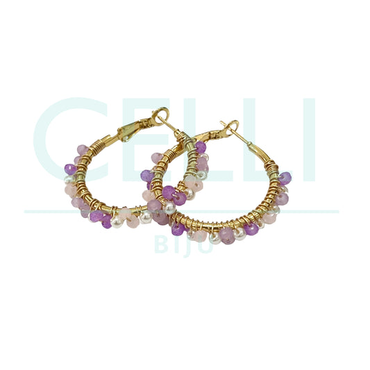 Brinco Argola de Aço - pérolas e cristais facetados
