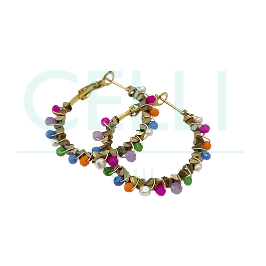 Brinco Argola de Aço - búzios com missangas