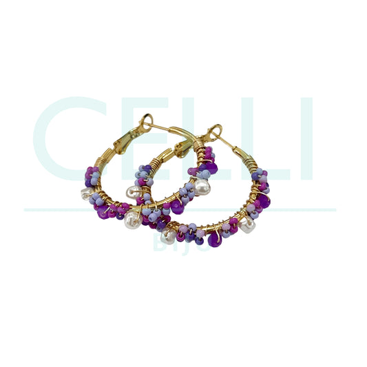 • Brinco Argola de Aço - pérolas e missangas