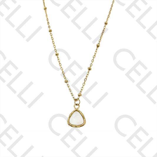 Preço normal €2,50Preço normalPreço unitário / porPreço de saldo €2,50Colar de Aço (malha oval achatada com bolinhas) - medalha triangular com madrepérola