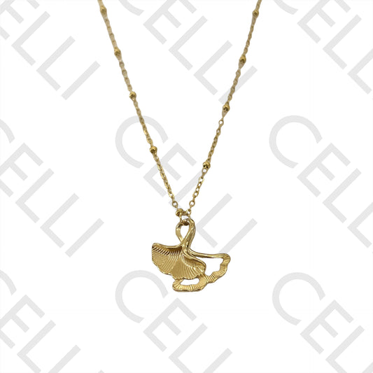 Colar de Aço (malha oval achatada com bolinhas) - medalha folha