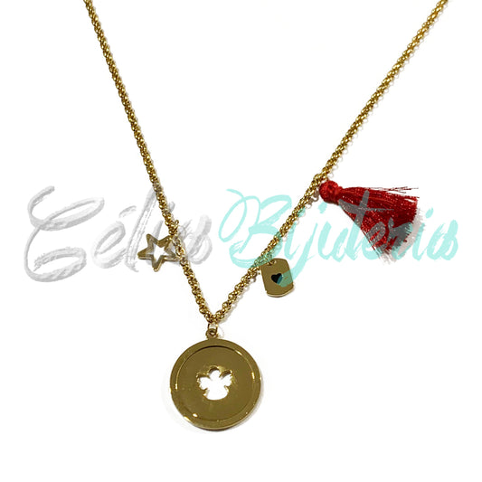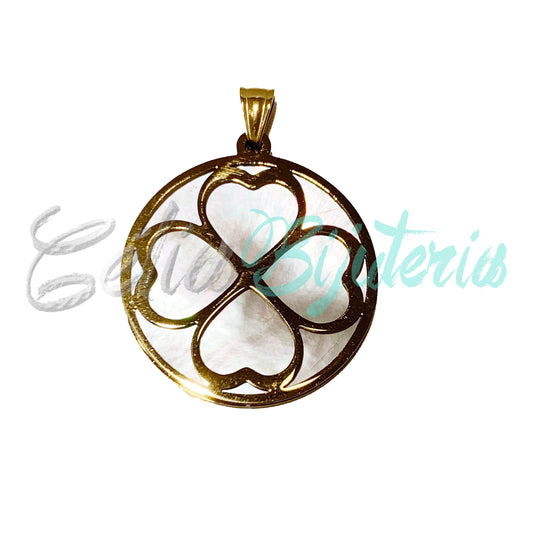 • Medalha/Colar de Aço com Madrepérola - trevo