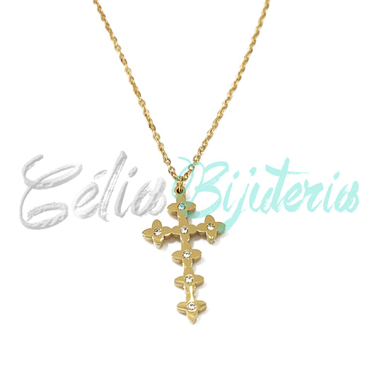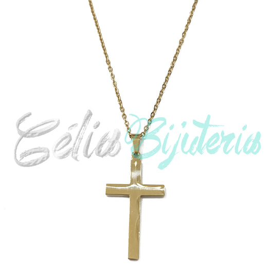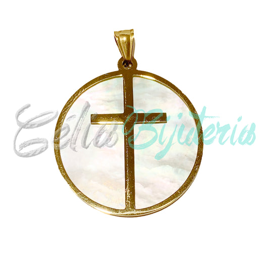 Medalha/Colar de Aço com Madrepérola - Cruz