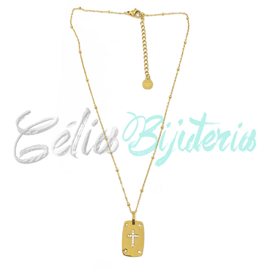 • Medalha/Colar de Aço com Madrepérola - Cruz