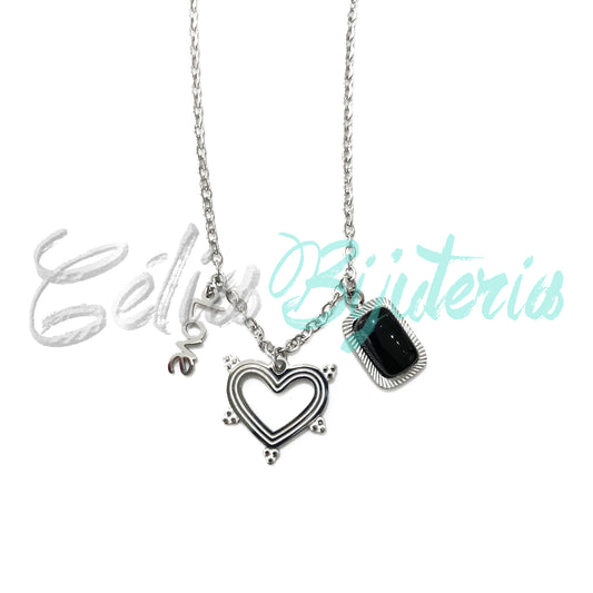 Colar de Aço com Pedras Naturais e Medalha de Insecto