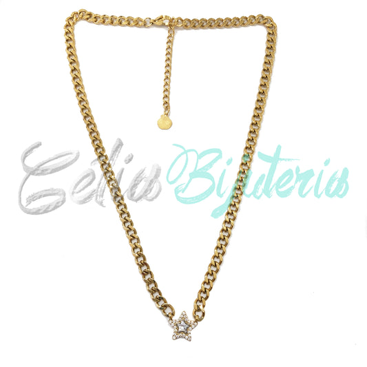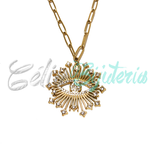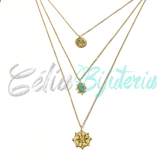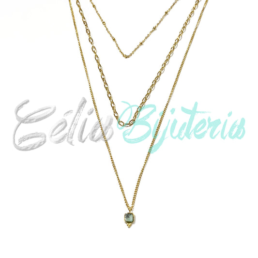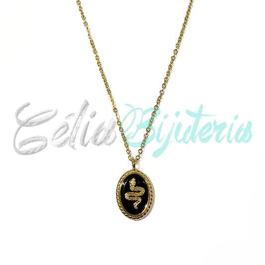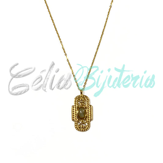 • Colar de Aço com Pedras Naturais e Medalha de Insecto