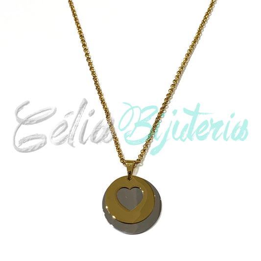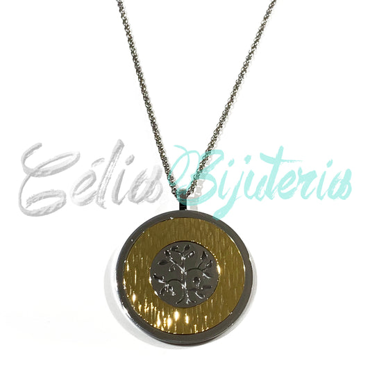 Medalha/Colar de Aço com Madrepérola - árvore da vida