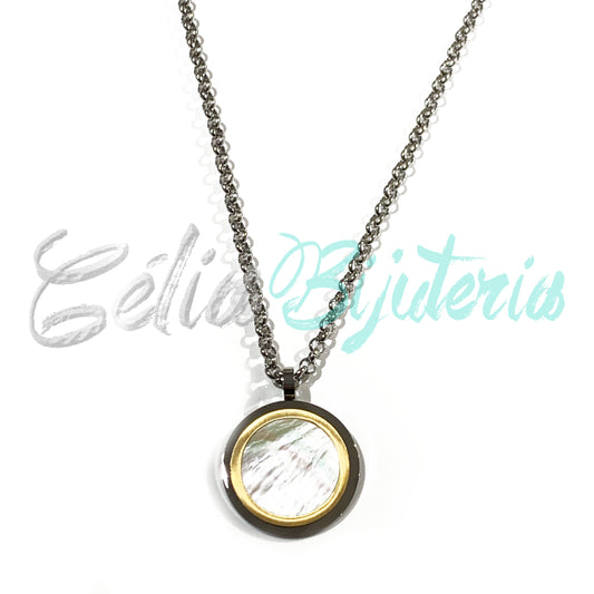 • Medalha/Colar de Aço com Madrepérola - árvore da vida