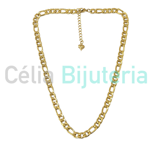 Colar / Pulseira de Aço Simples - Malha Figaro (3+1)