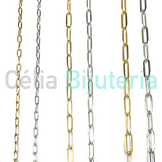 Colar / Pulseira de Aço Simples - elo oval detalhado