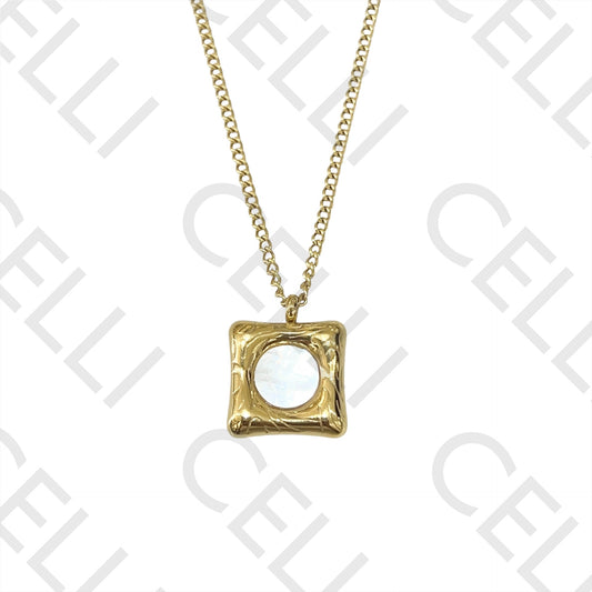 Preço normal €3,00Preço normalPreço unitário / porPreço de saldo €3,00Colar de Aço - quadrado com madrepérola