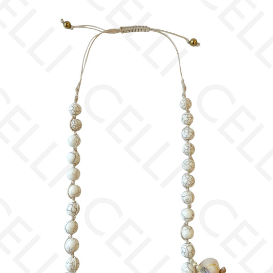 • Colar de aço - ajustável de pedra natural e búzios