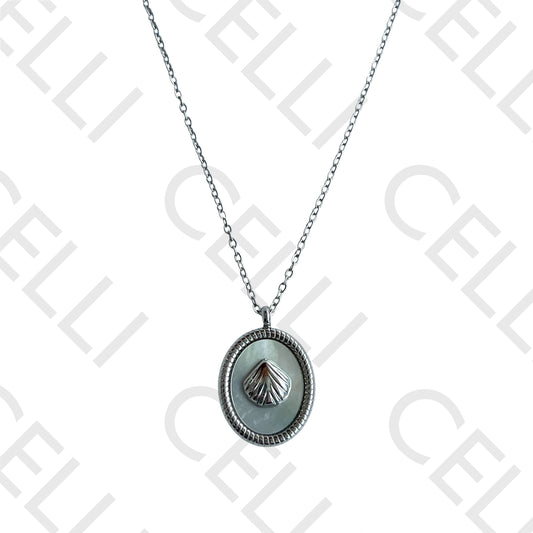 Colar de aço - pérolas com medalhinhas de lua e estrela