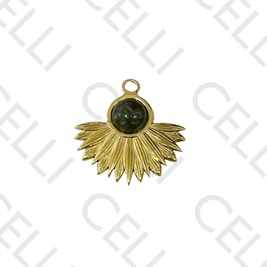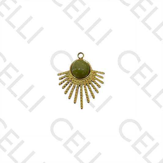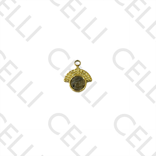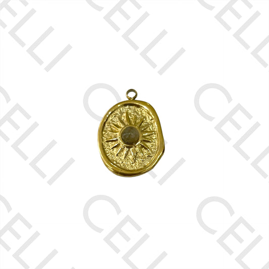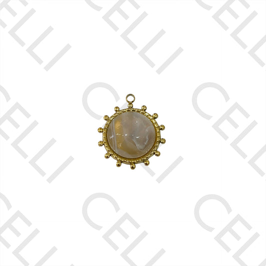Medalha de Aço com Pedra Natural - redondo detalhado