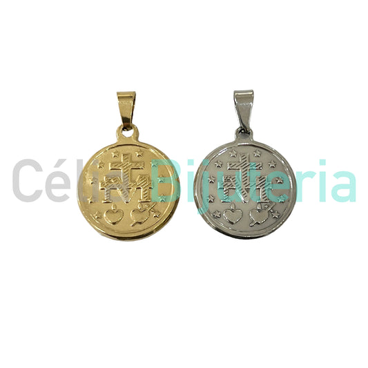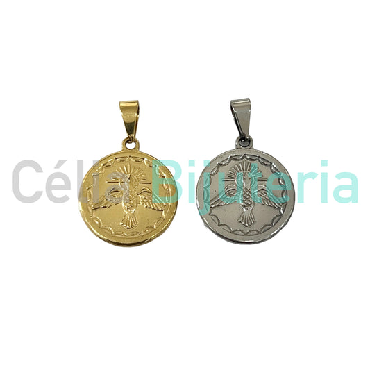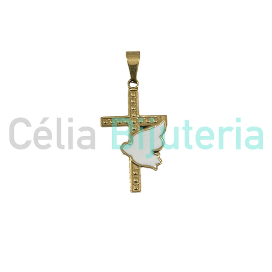 Medalha de Aço - cruz com Espirito Santo esmaltado