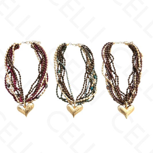 Preço normal €8,00Preço normalPreço unitário / porPreço de saldo €8,00Colar de moda - múltiplo, contas de madeira, coração