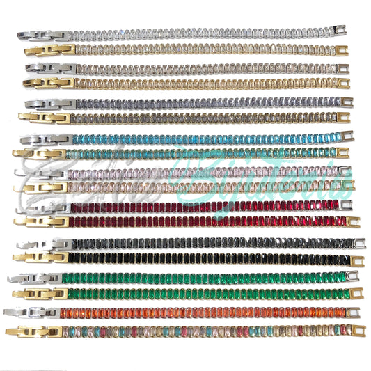 Pulseira de Aço Ajustável com Brilhantes - grosso
