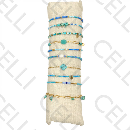 Preço normal A partir de €18,00Preço normalPreço unitário / porPreço de saldo A partir de €18,00Conjunto de Pulseiras (10) - missanga, pedras naturais e aço