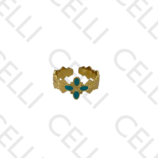 • Steel Ring - detailed with enameled flower