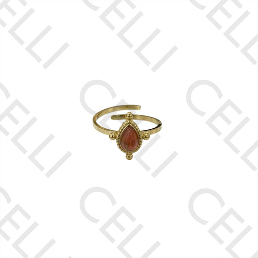 • Steel Ring - Natural Stone Teardrop Detailed