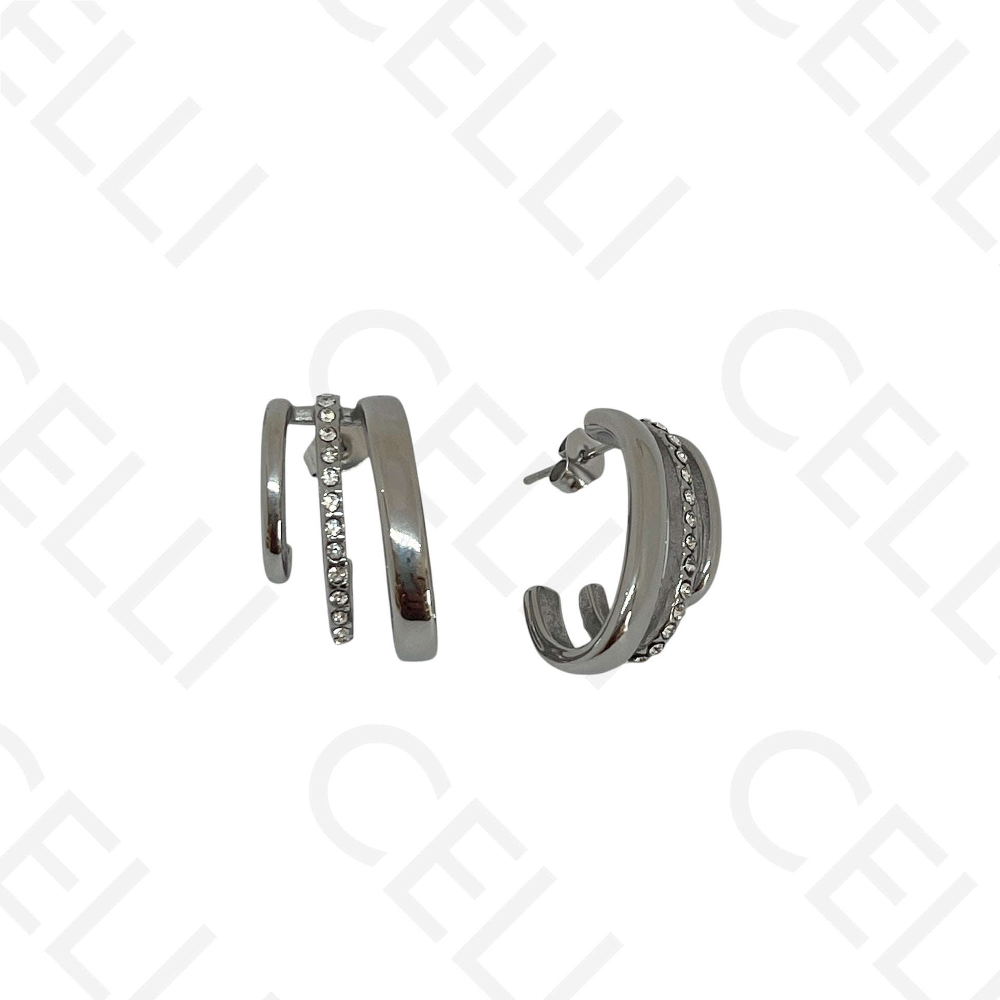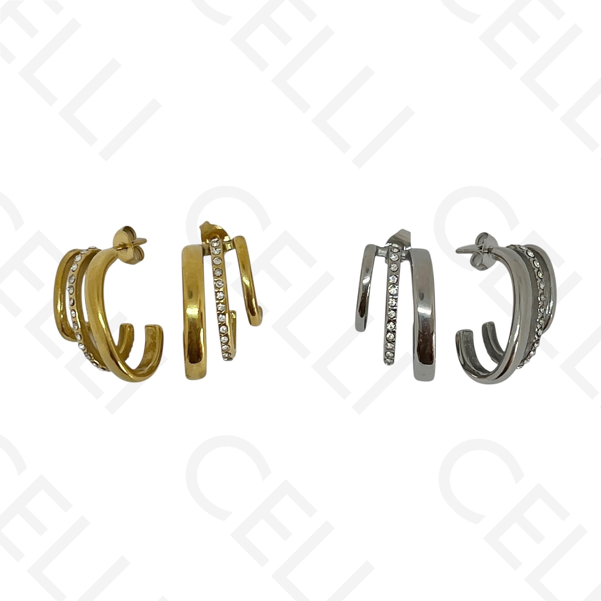 Steel earring - triple with brilliants Steel earring - triple with brilliants Steel earring - triple with brilliants Steel earring - triple with brilliants Steel earring - triple with brilliants Steel earring - triple with brilliants