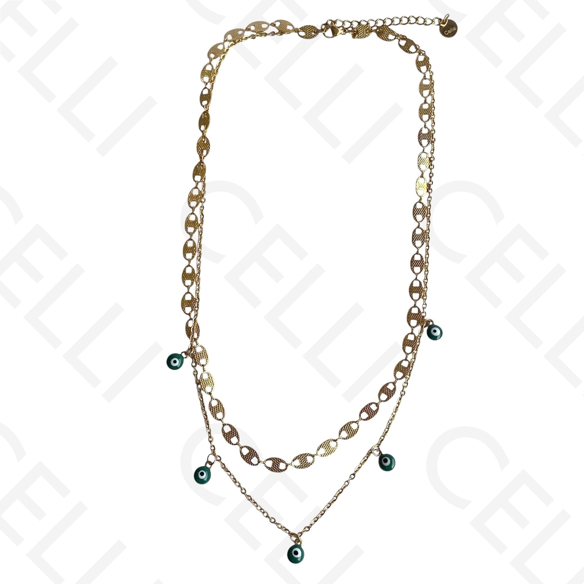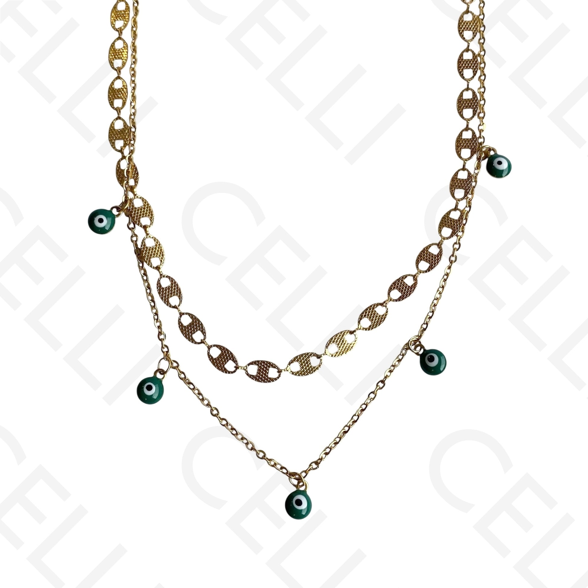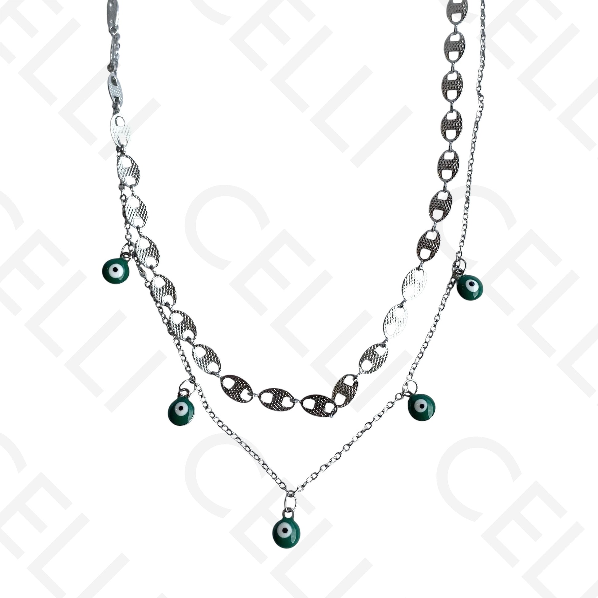 Double Steel Necklace/Bracelet - Green Evil Eye