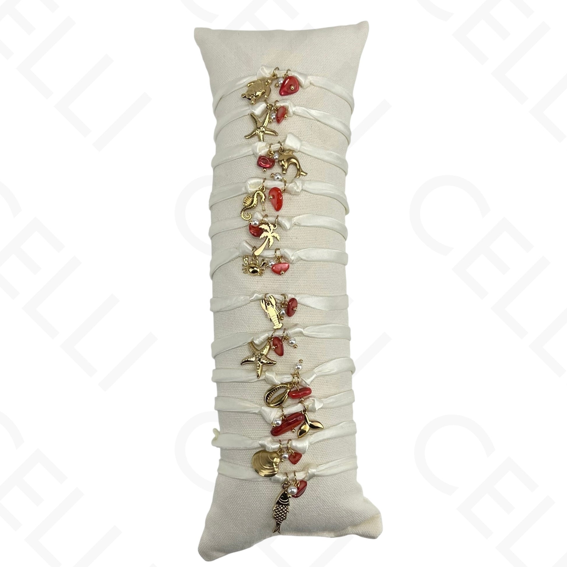 Set of Stainless Steel Bracelets (12 pcs.) - Fabric with steel pendant