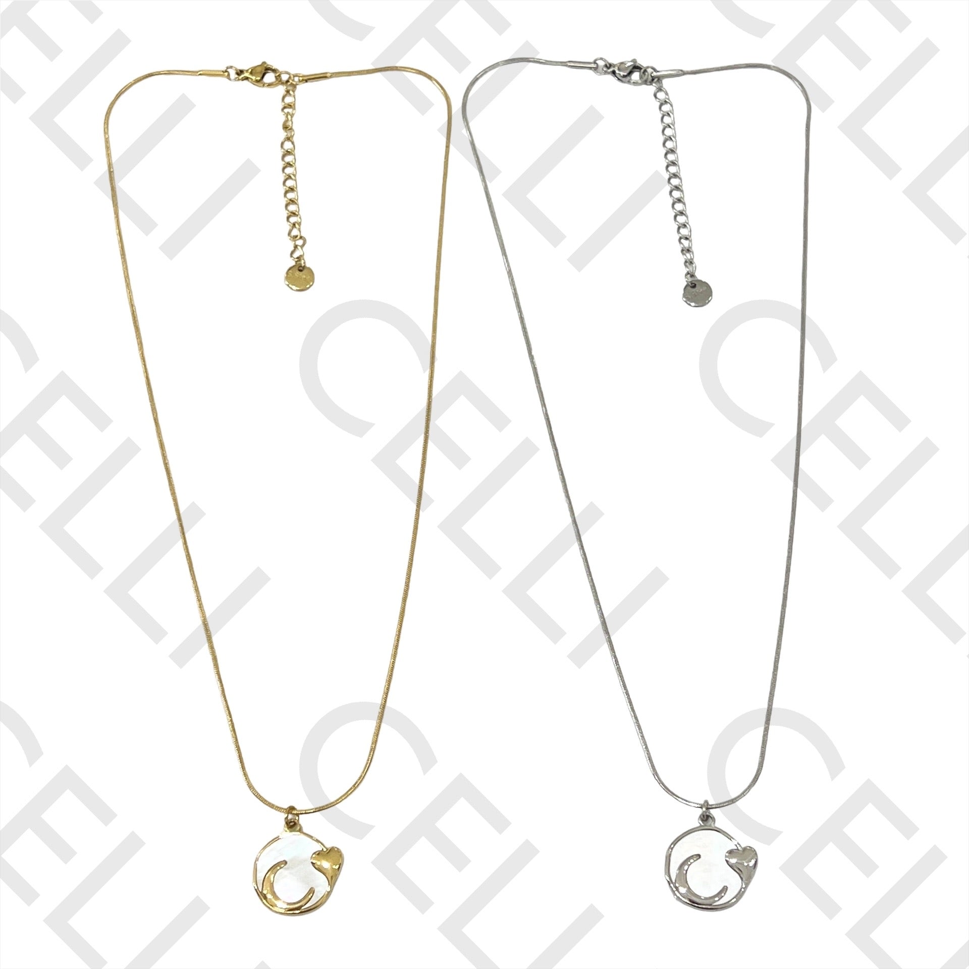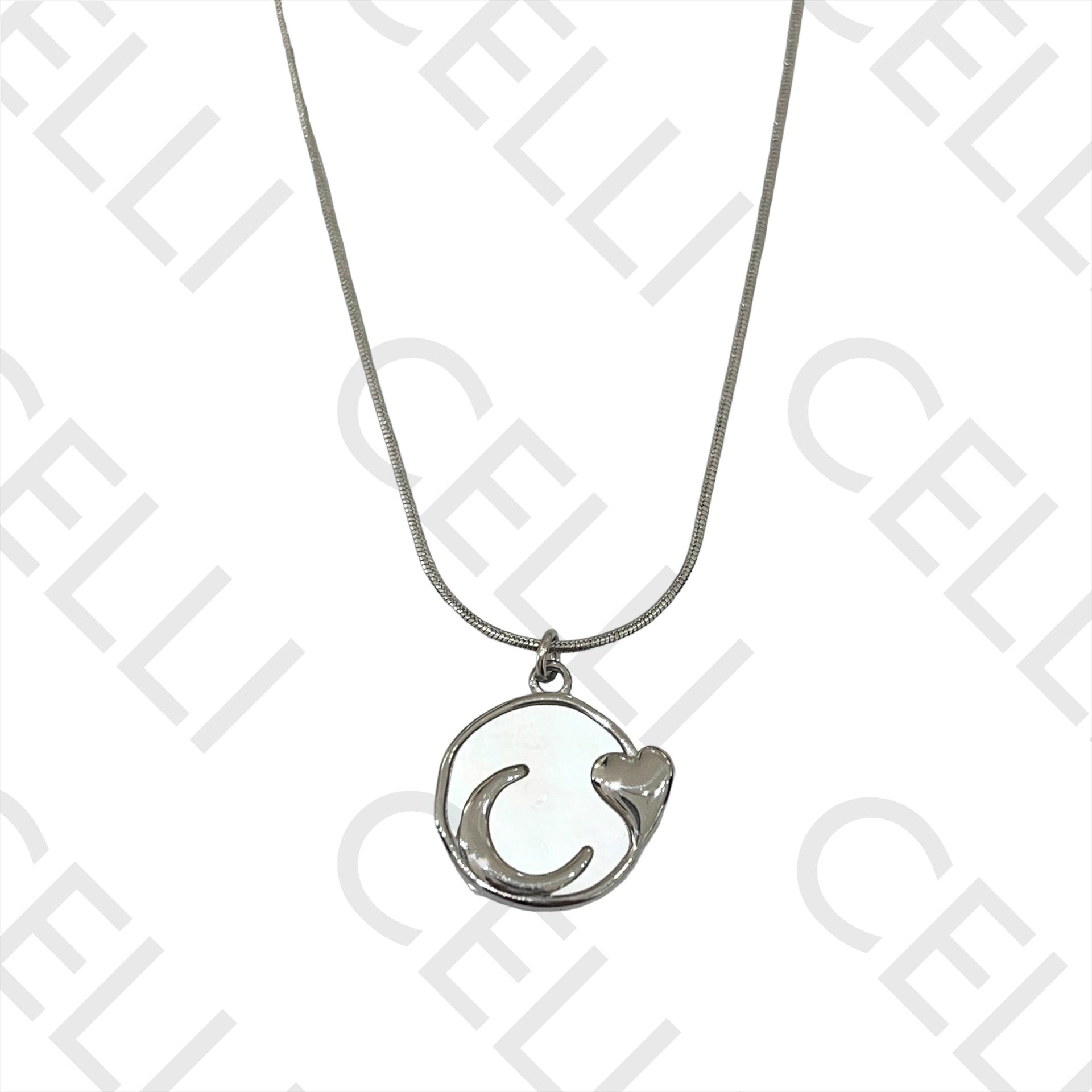 Steel Necklace - Moon and Heart with Mother-of-Pearl