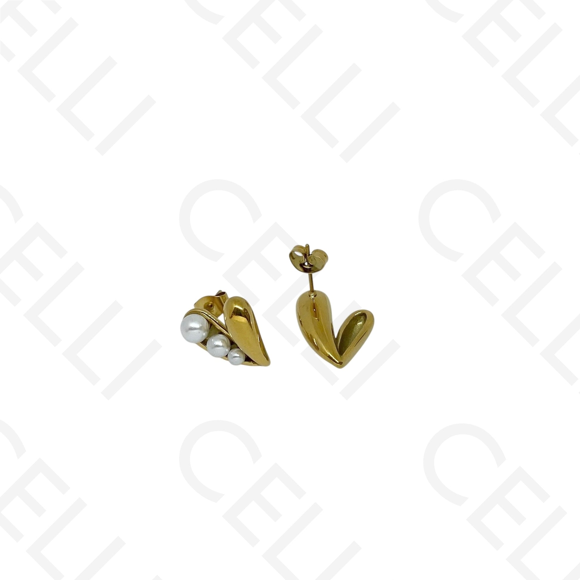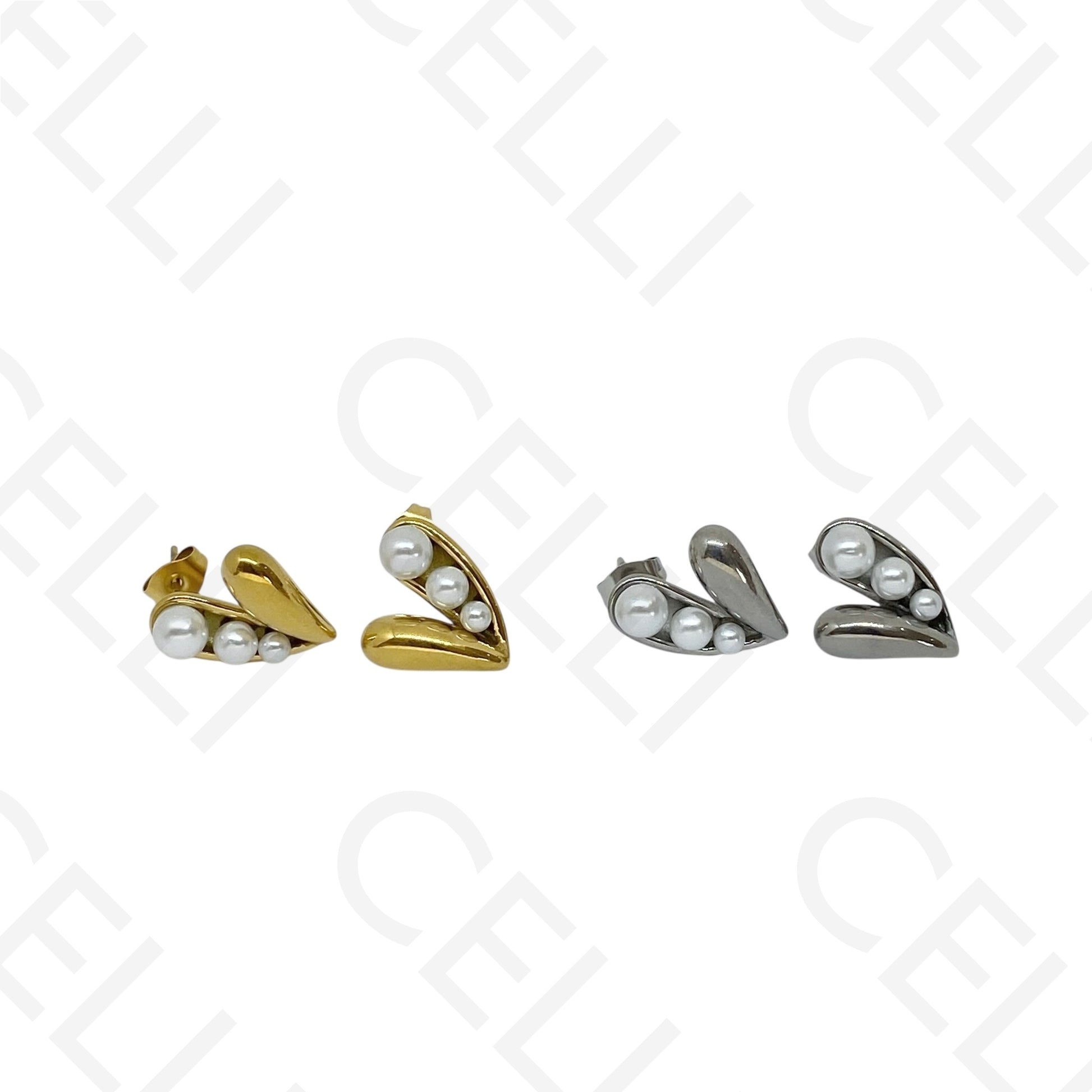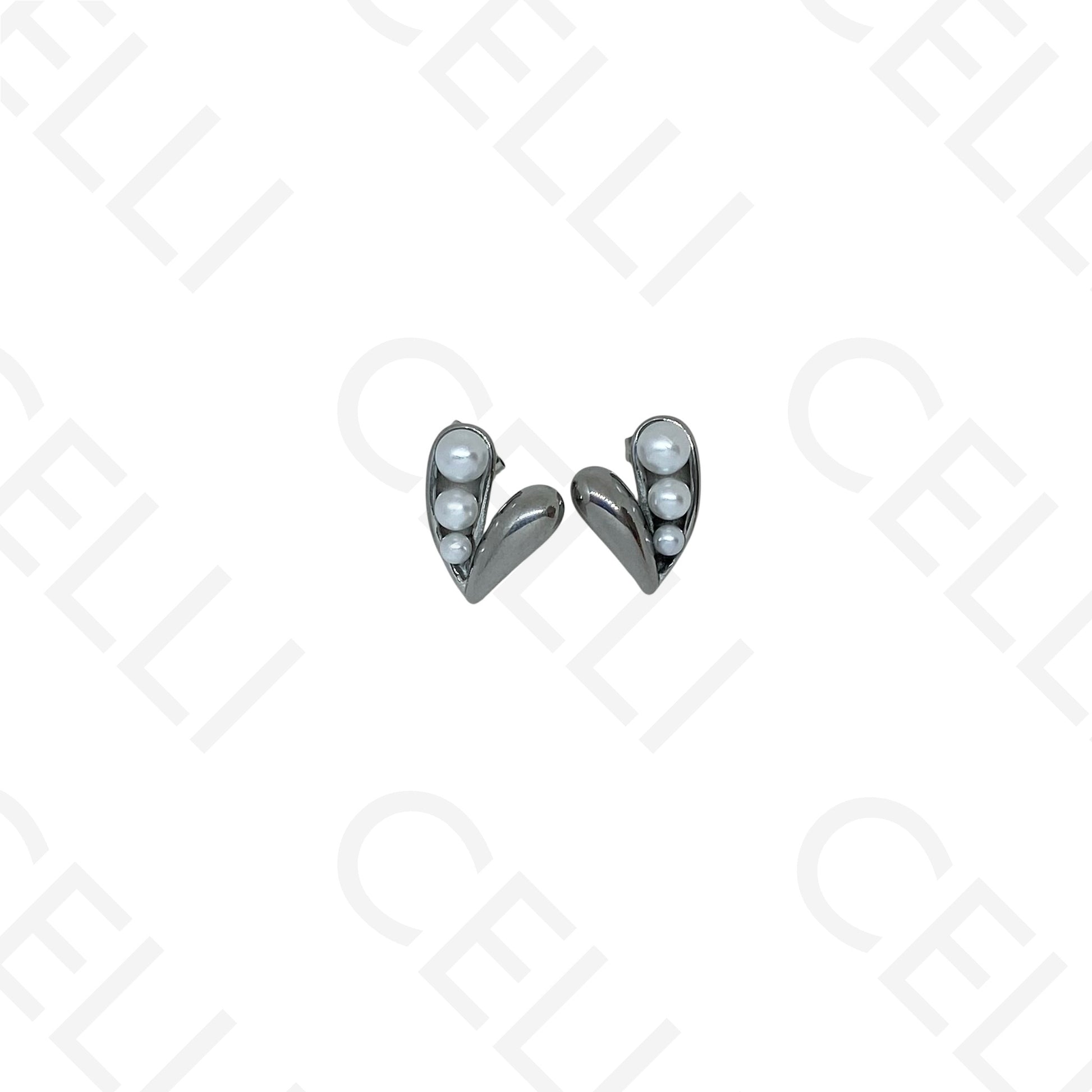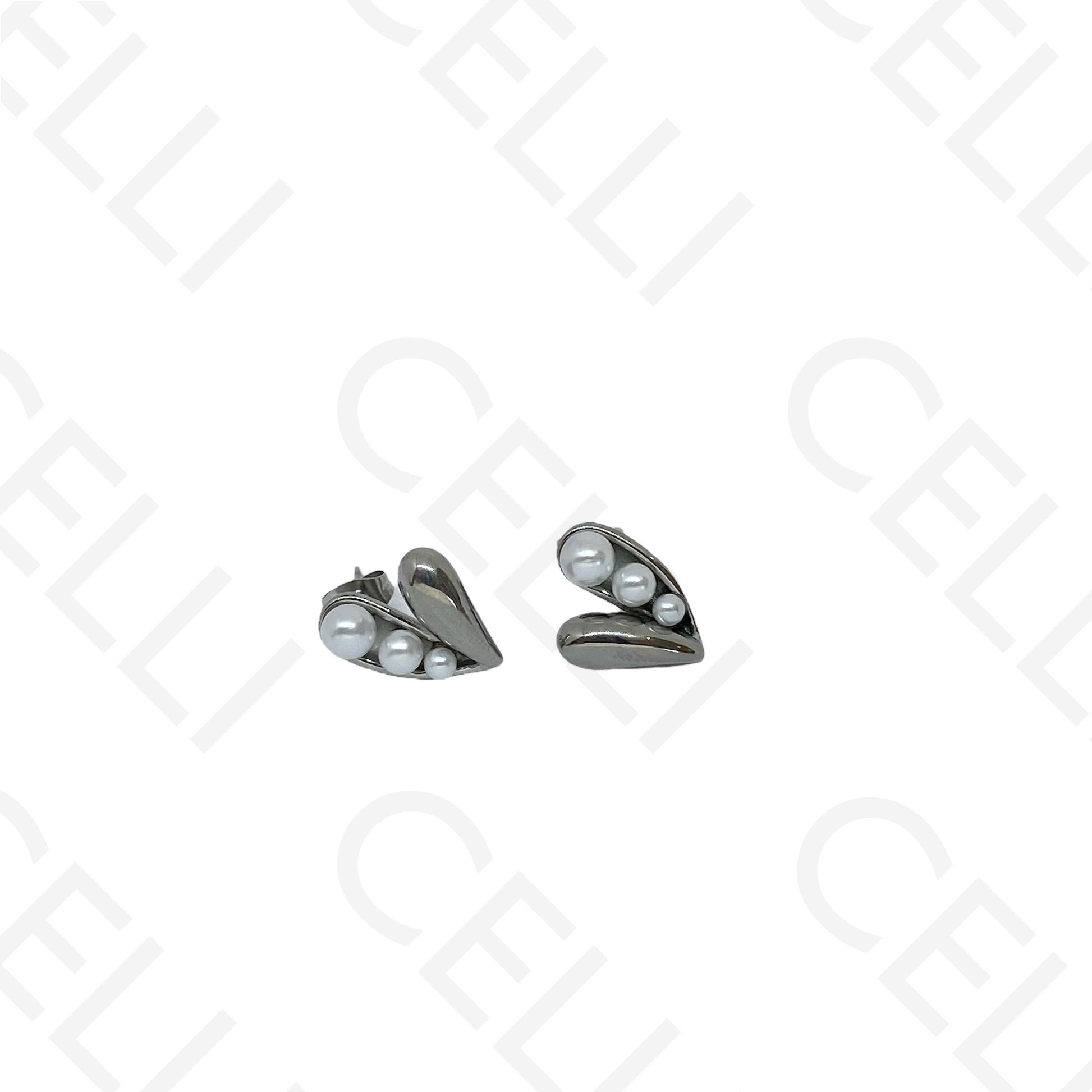 Pendiente de acero - corazón con perlas