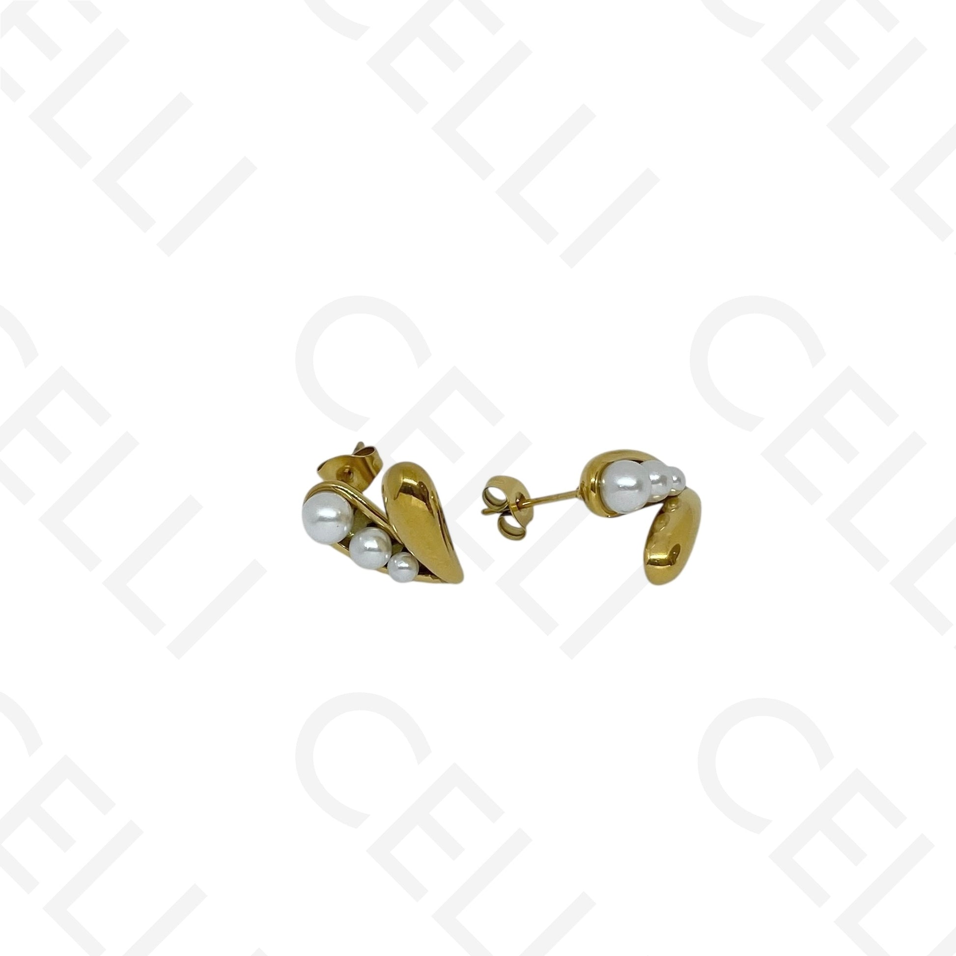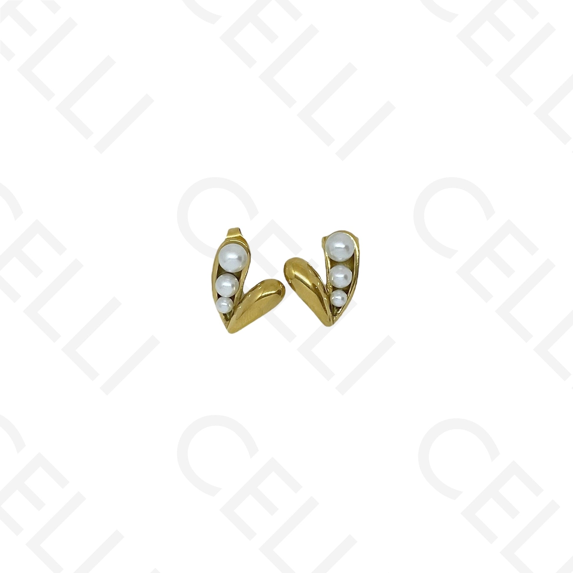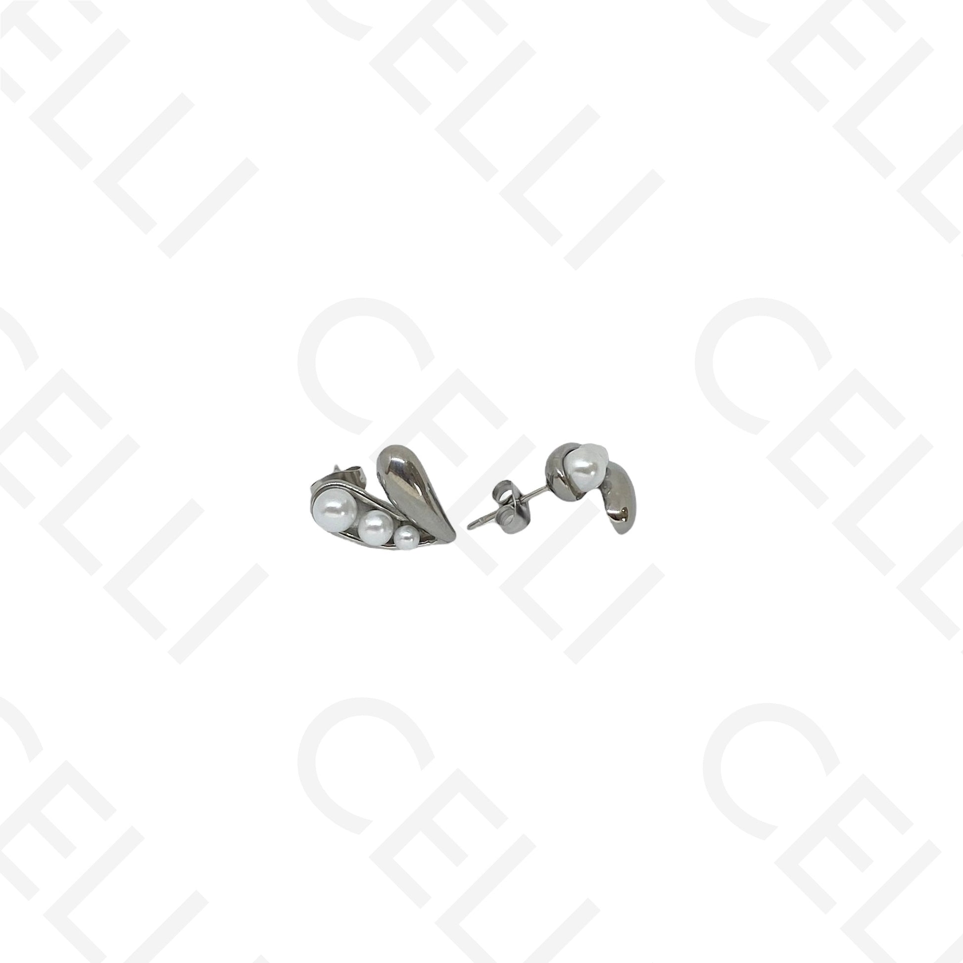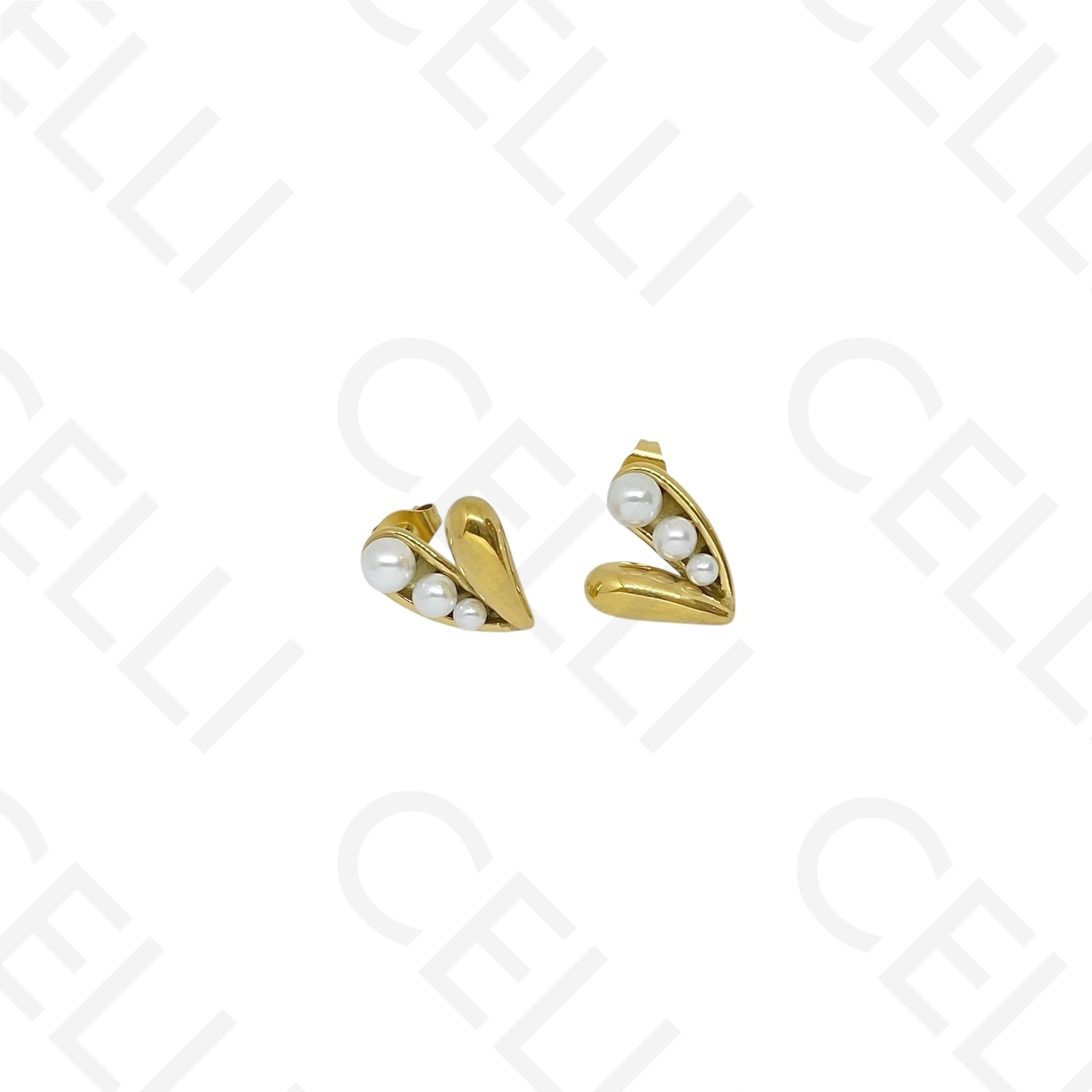 Pendiente de acero - corazón con perlas
