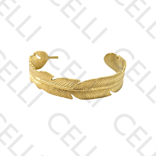 Precio habitual €5,00Precio habitualPrecio unitario / porPrecio de oferta €5,00Brazalete de acero grueso - detalle de plumas