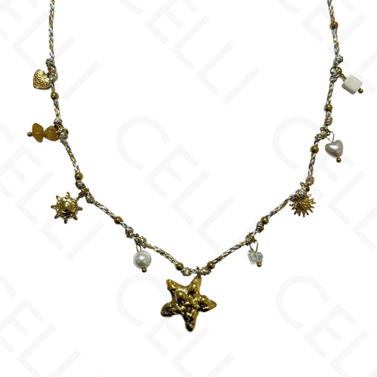 • Collar de acero - múltiples colgantes, flor, hilo de algodón
