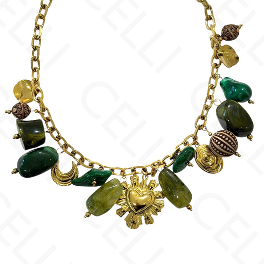 Collar de acero - colgante con piedras naturales