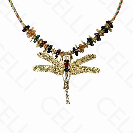 • Collar de acero - libélula, hilo de algodón