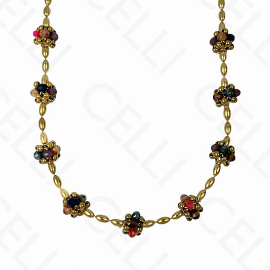• Collar de acero - bolas de cristales facetados (4 colores)