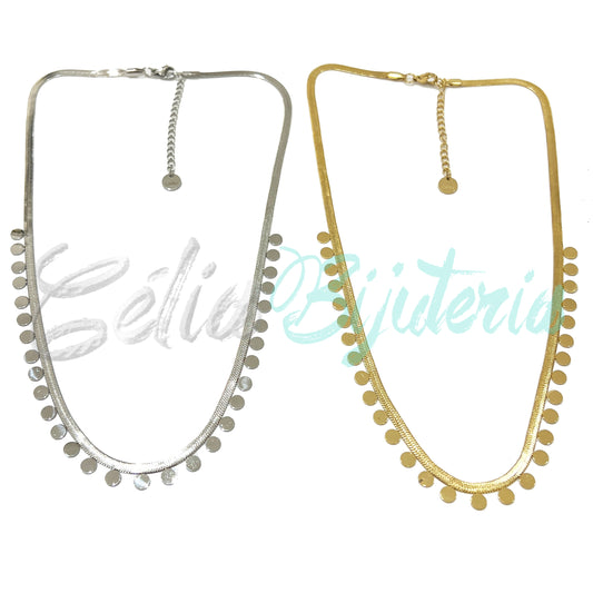 Precio habitual €3,50Precio habitualPrecio unitario / por€5,00Precio de oferta €3,50Collar Serpiente Plana de Acero con Medallas - gota
