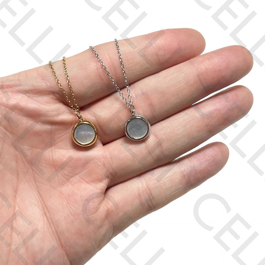 Collar de acero - nácar redondo, sonrisa en la espalda