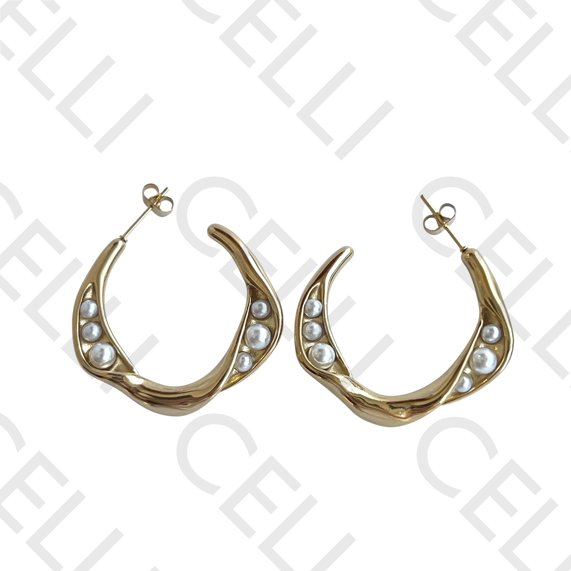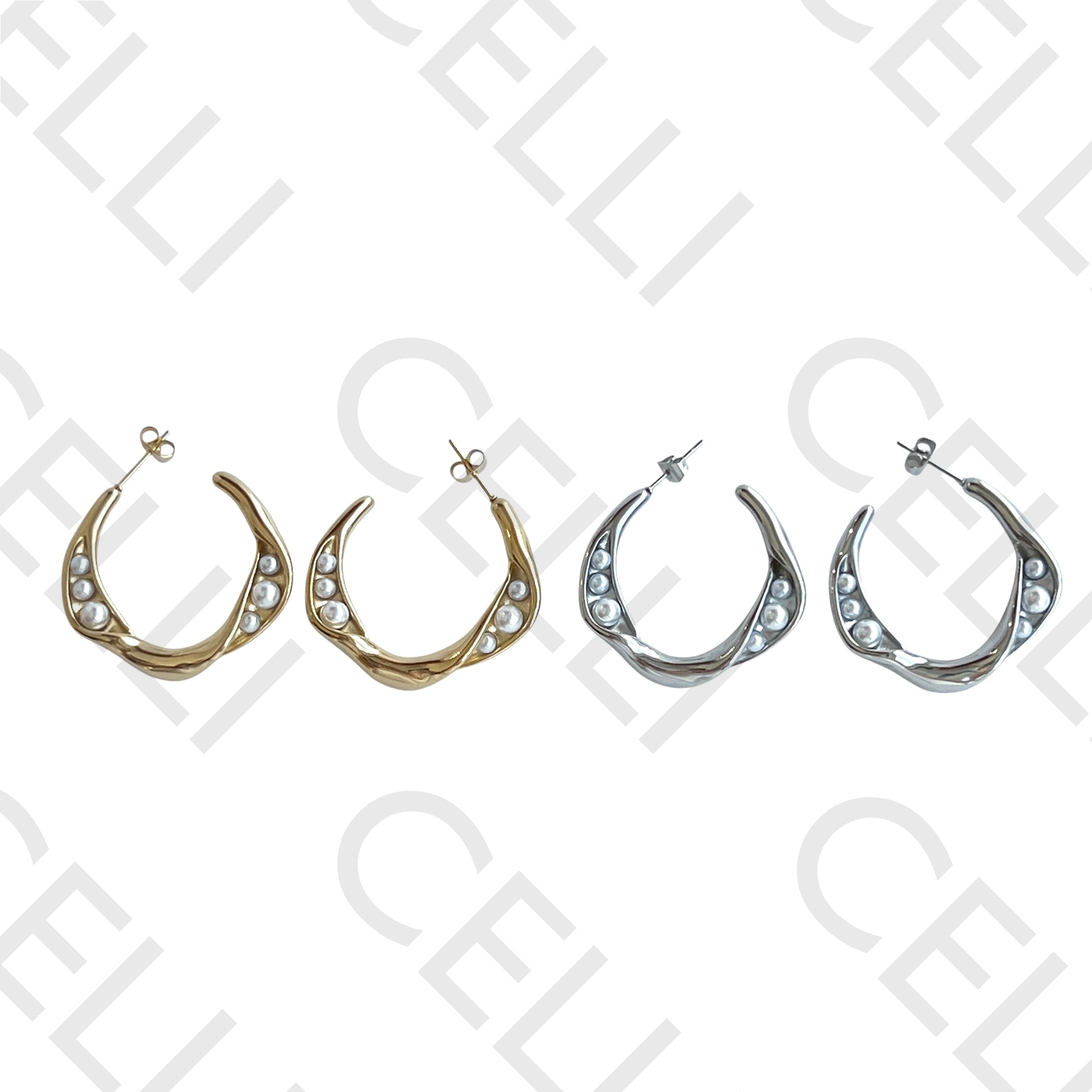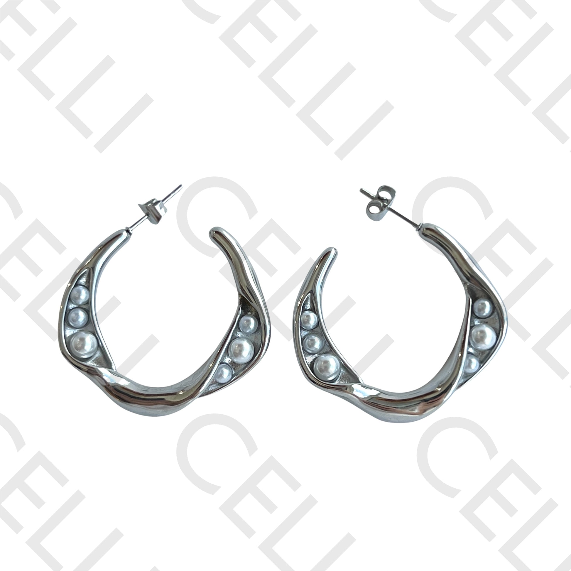 Salto de acero - aro torcido con perlas Salto de acero - aro torcido con perlas Salto de acero - aro torcido con perlas