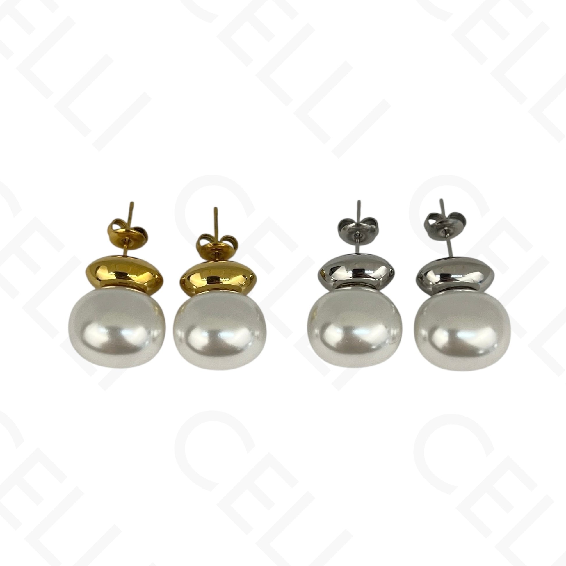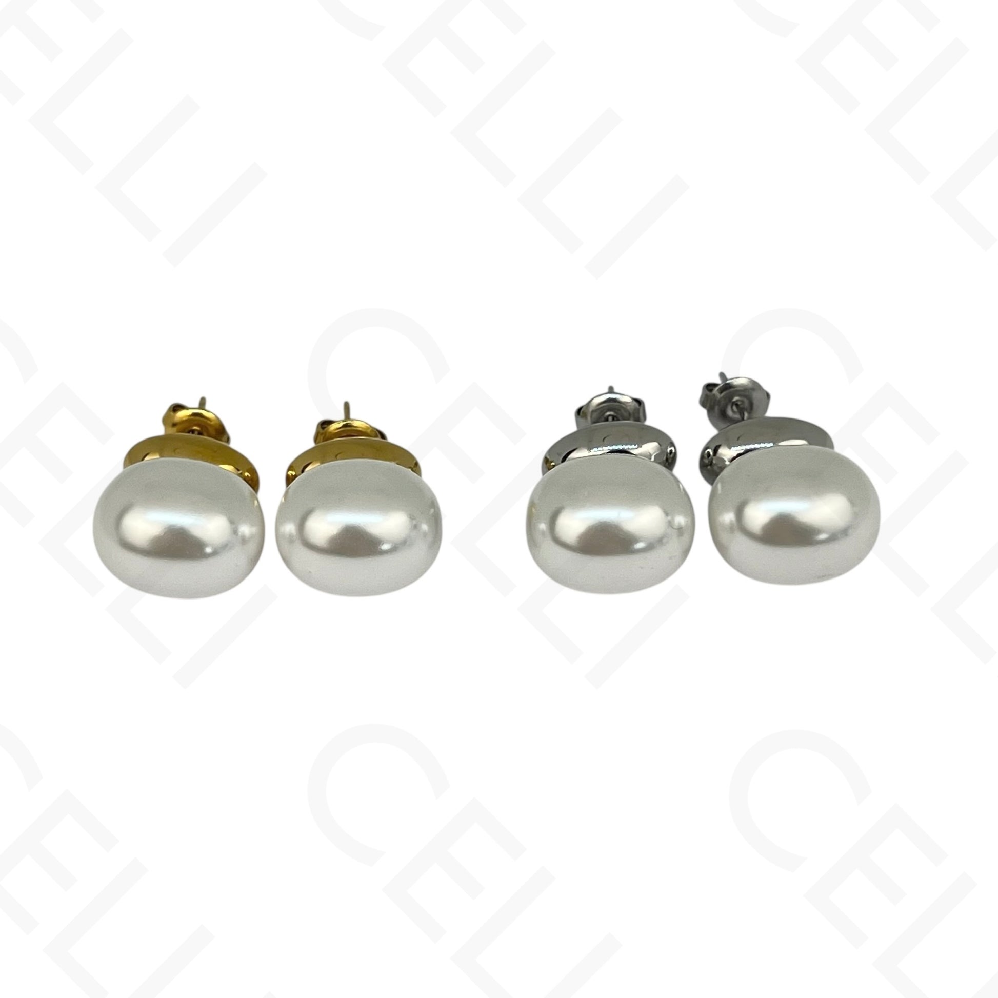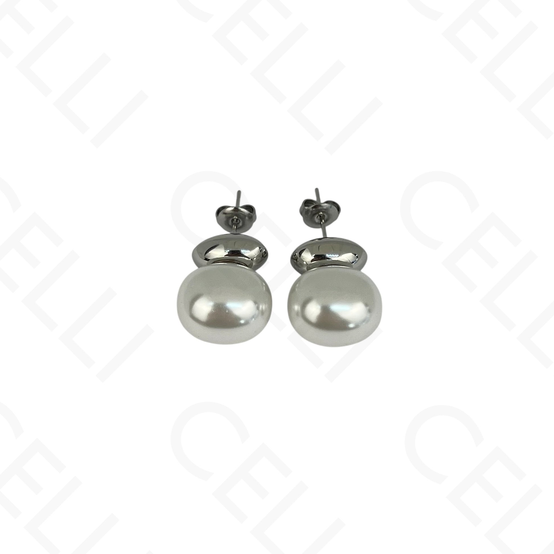 Pendientes de acero - óvalo y perla