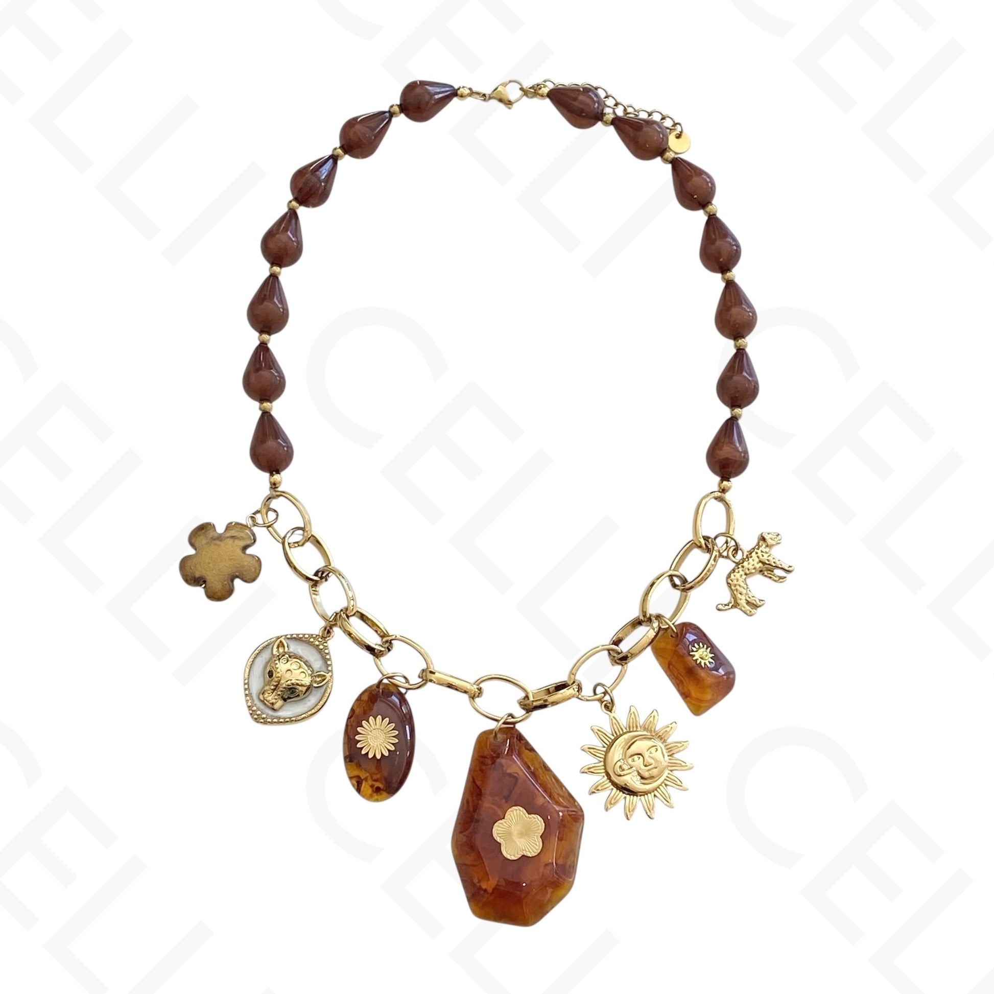 Collar de acero - múltiples colgantes de resina y acero Collar de acero - múltiples colgantes de resina y acero