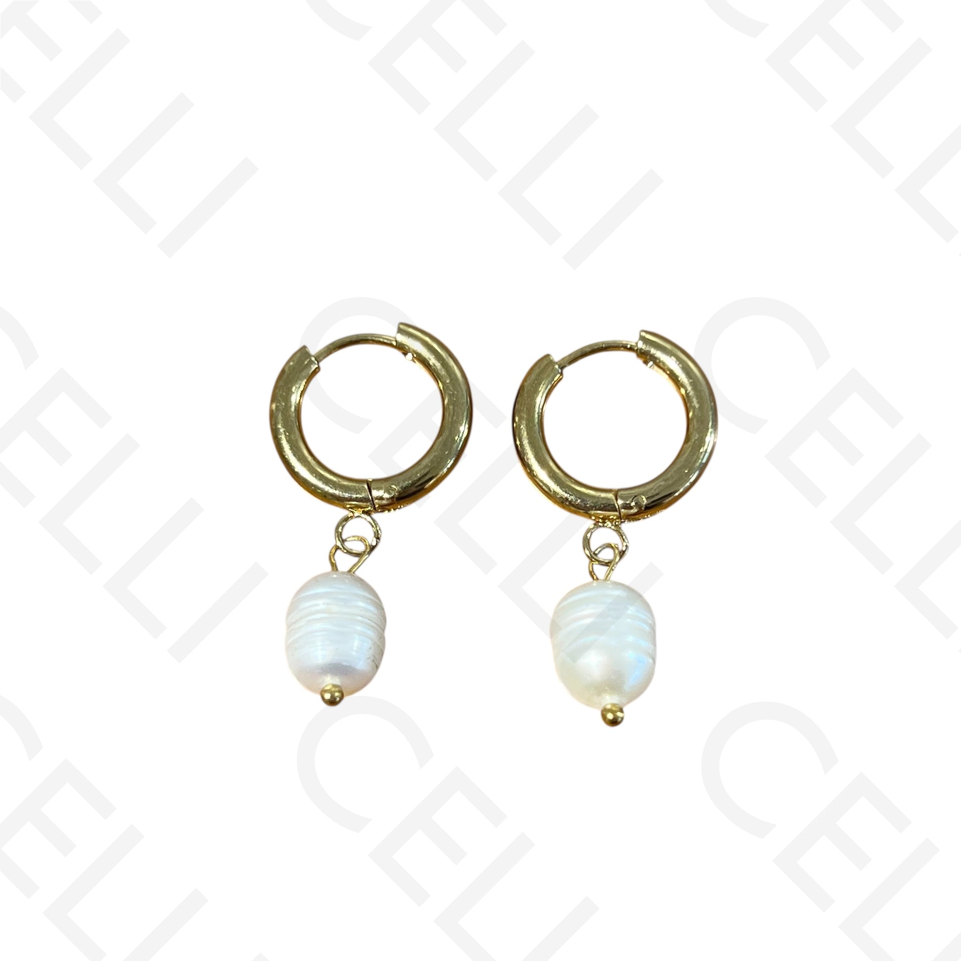 Brinco de Aço -  Argola com pérola de água doce Brinco de Aço -  Argola com pérola de água doce Brinco de Aço -  Argola com pérola de água doce