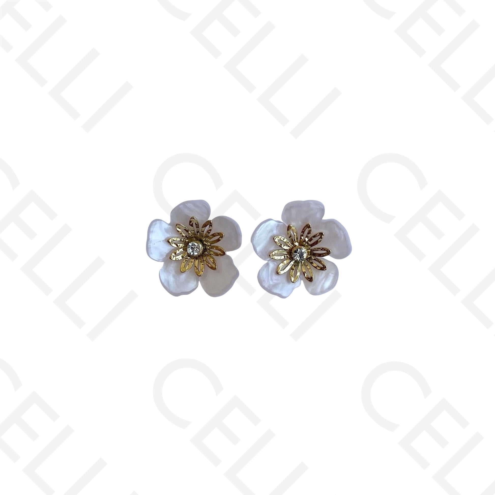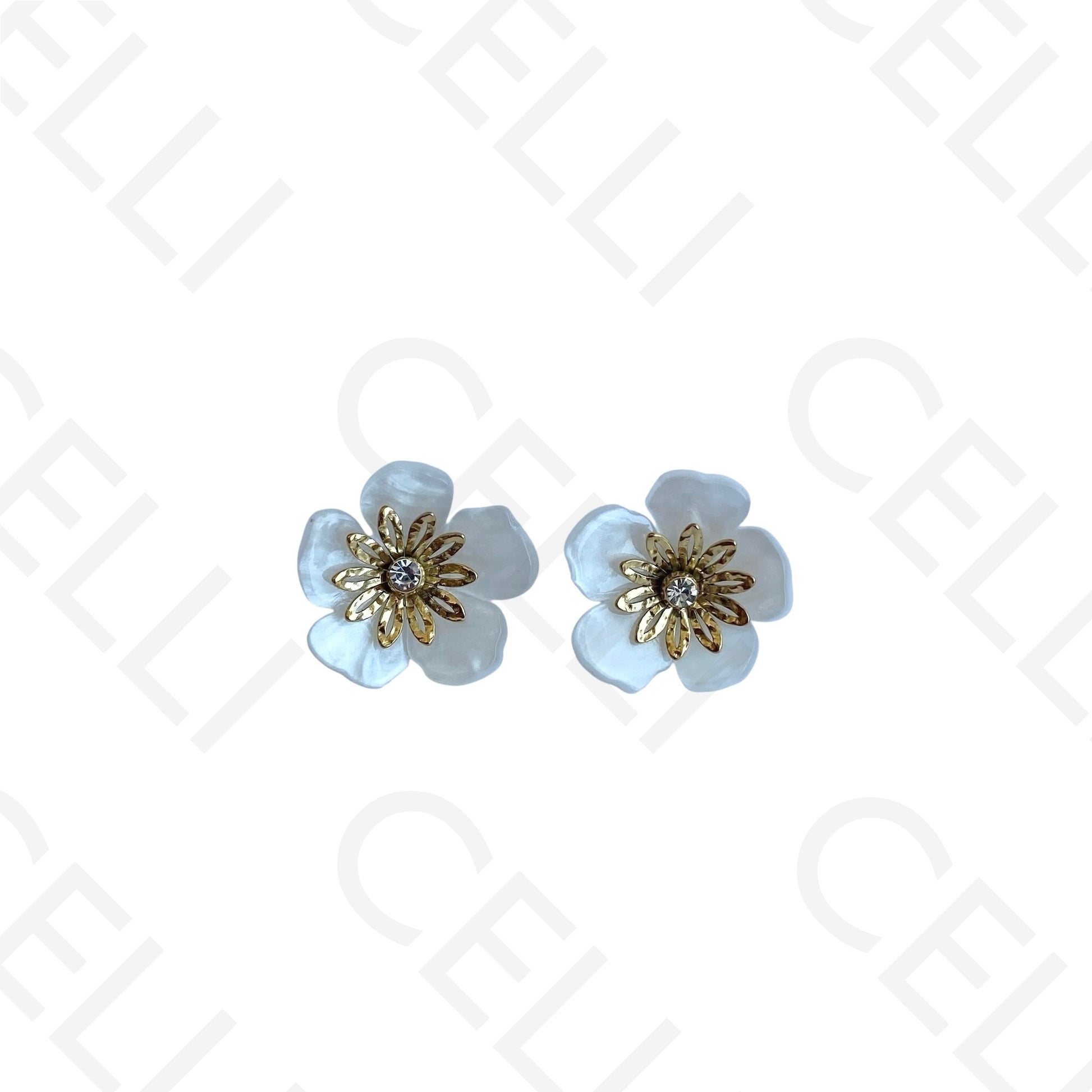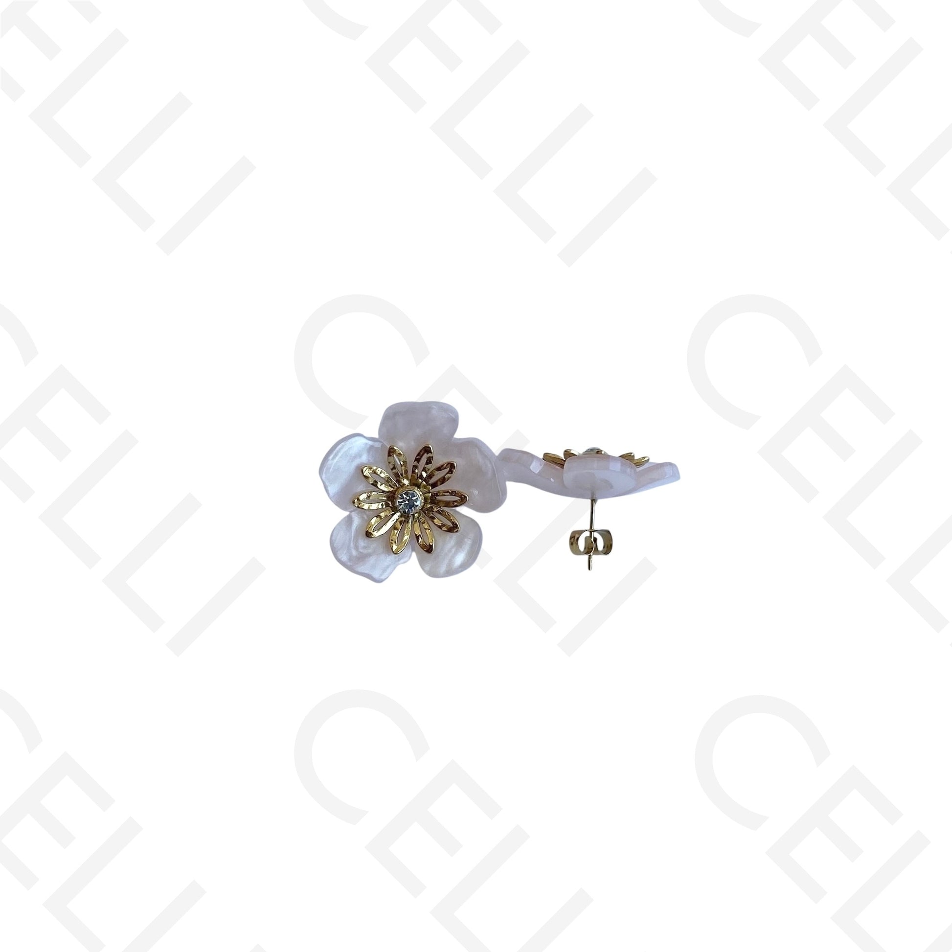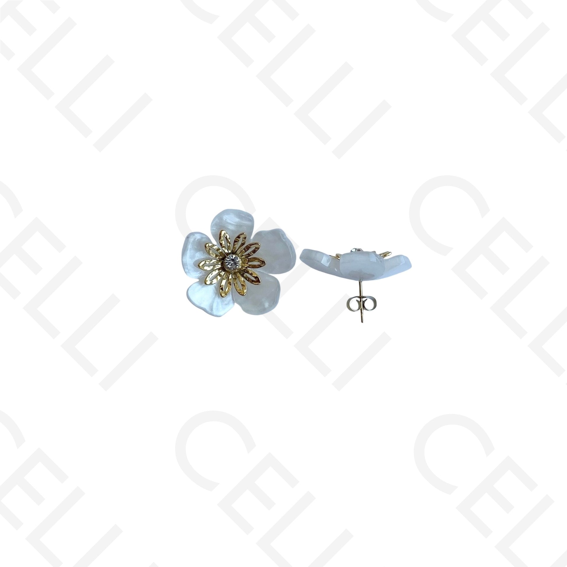 Brinco de aço - flores de resina colorido (5 pétalas com brilhante)