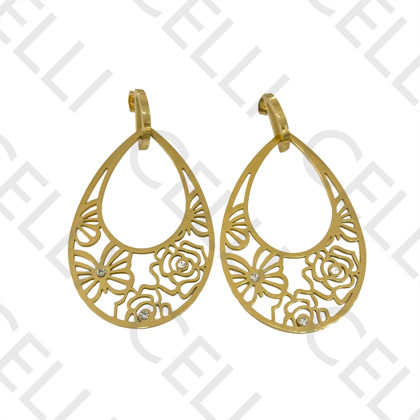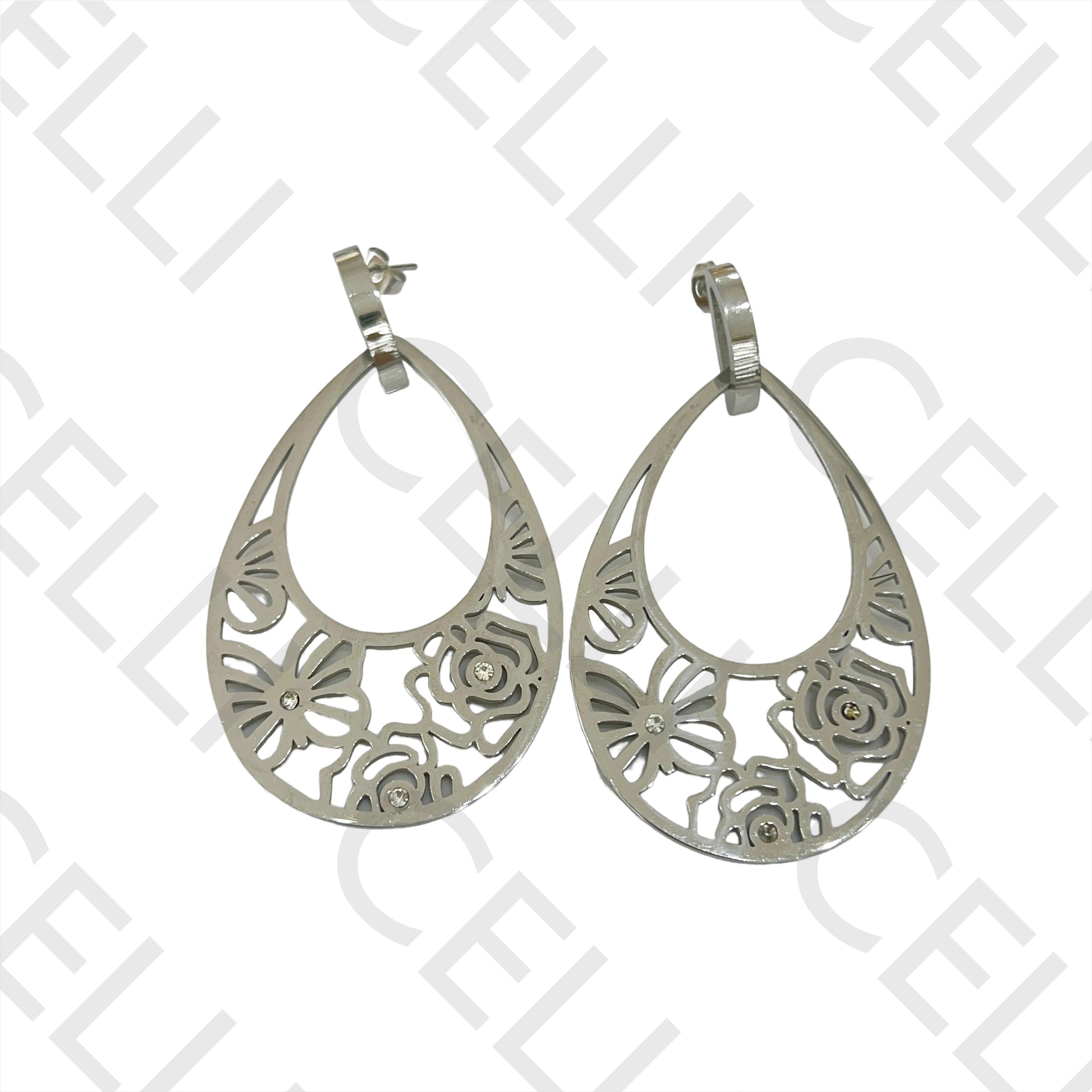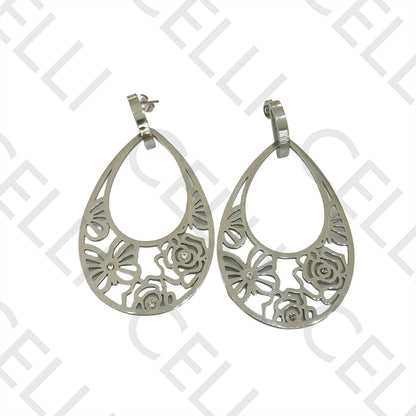 Brinco de Aço - flores e borboletas