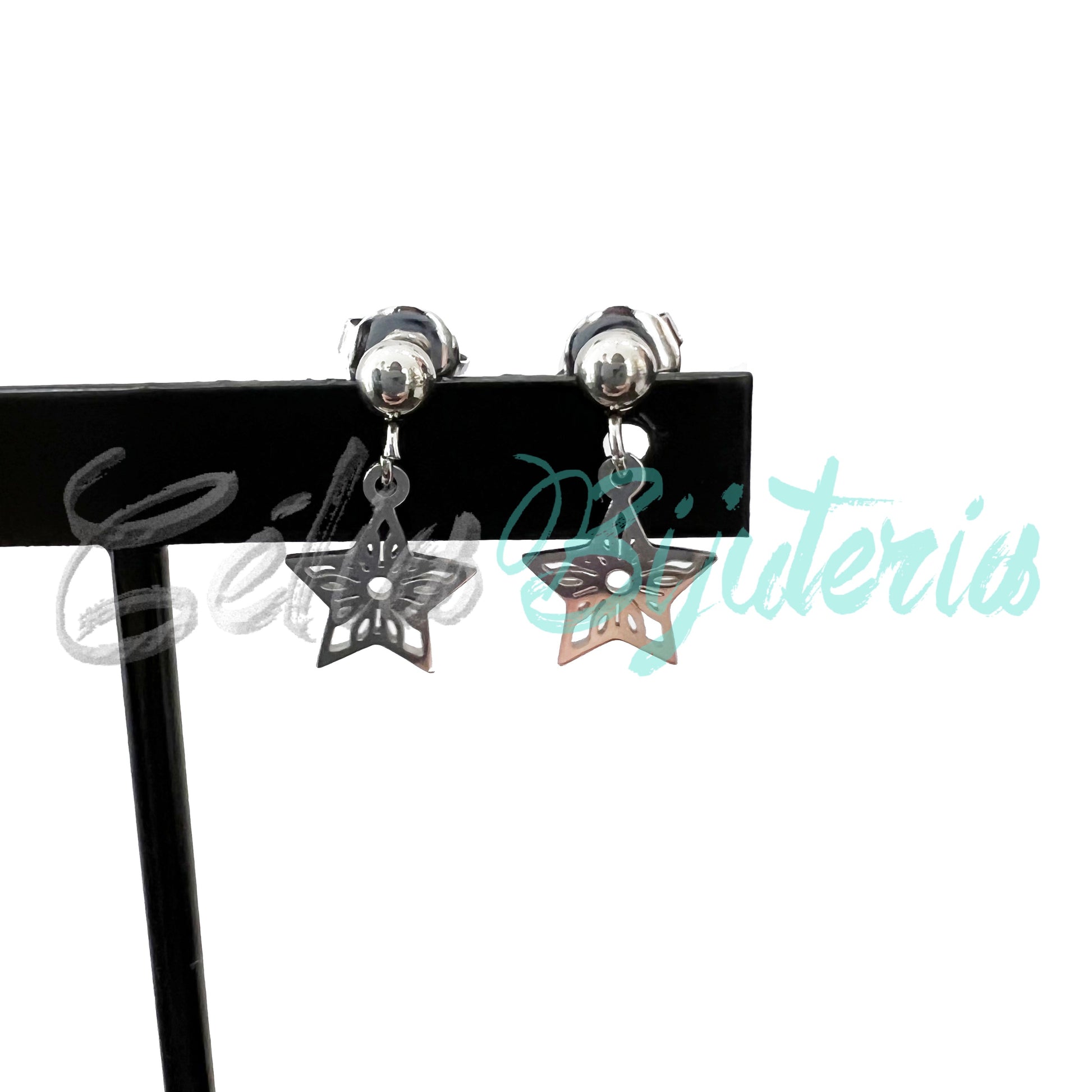 Brinco de Aço Mini com Medalha - estrela Brinco de Aço Mini com Medalha - estrela Brinco de Aço Mini com Medalha - estrela