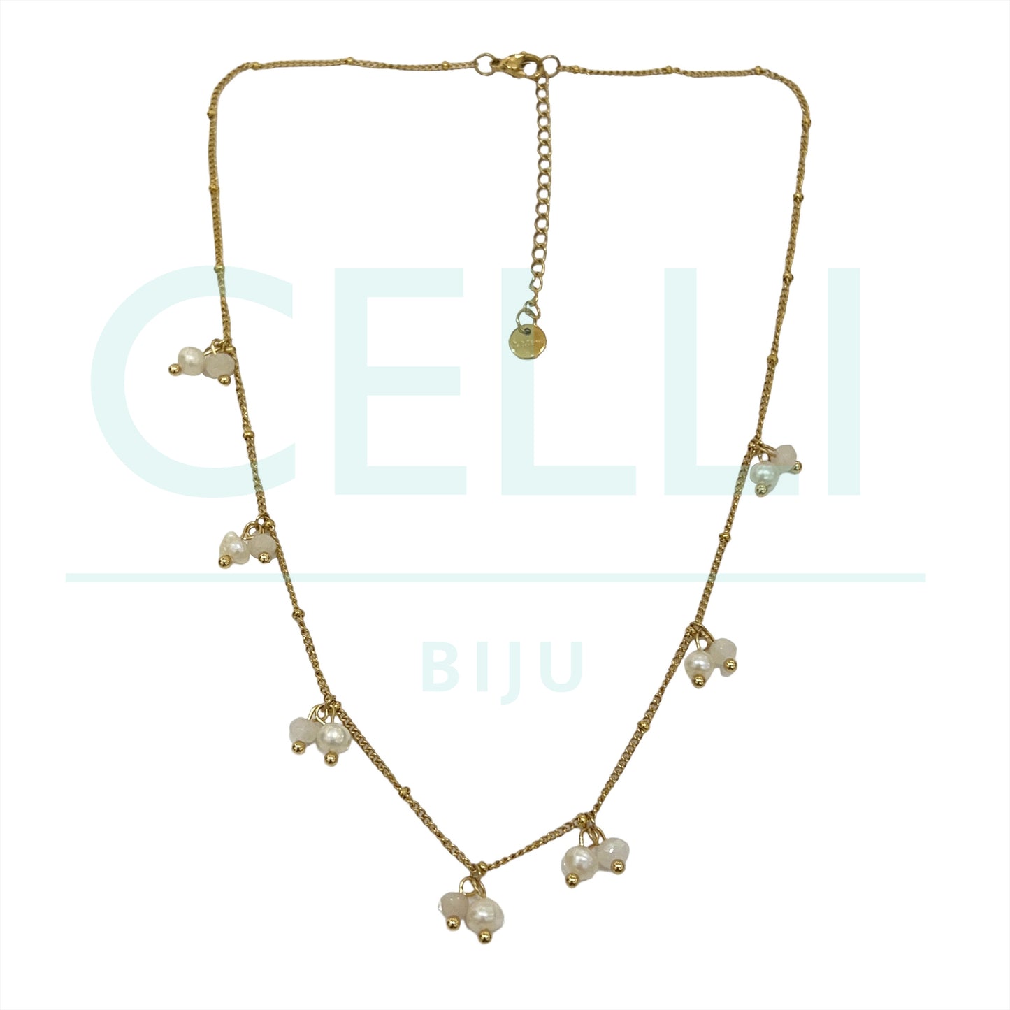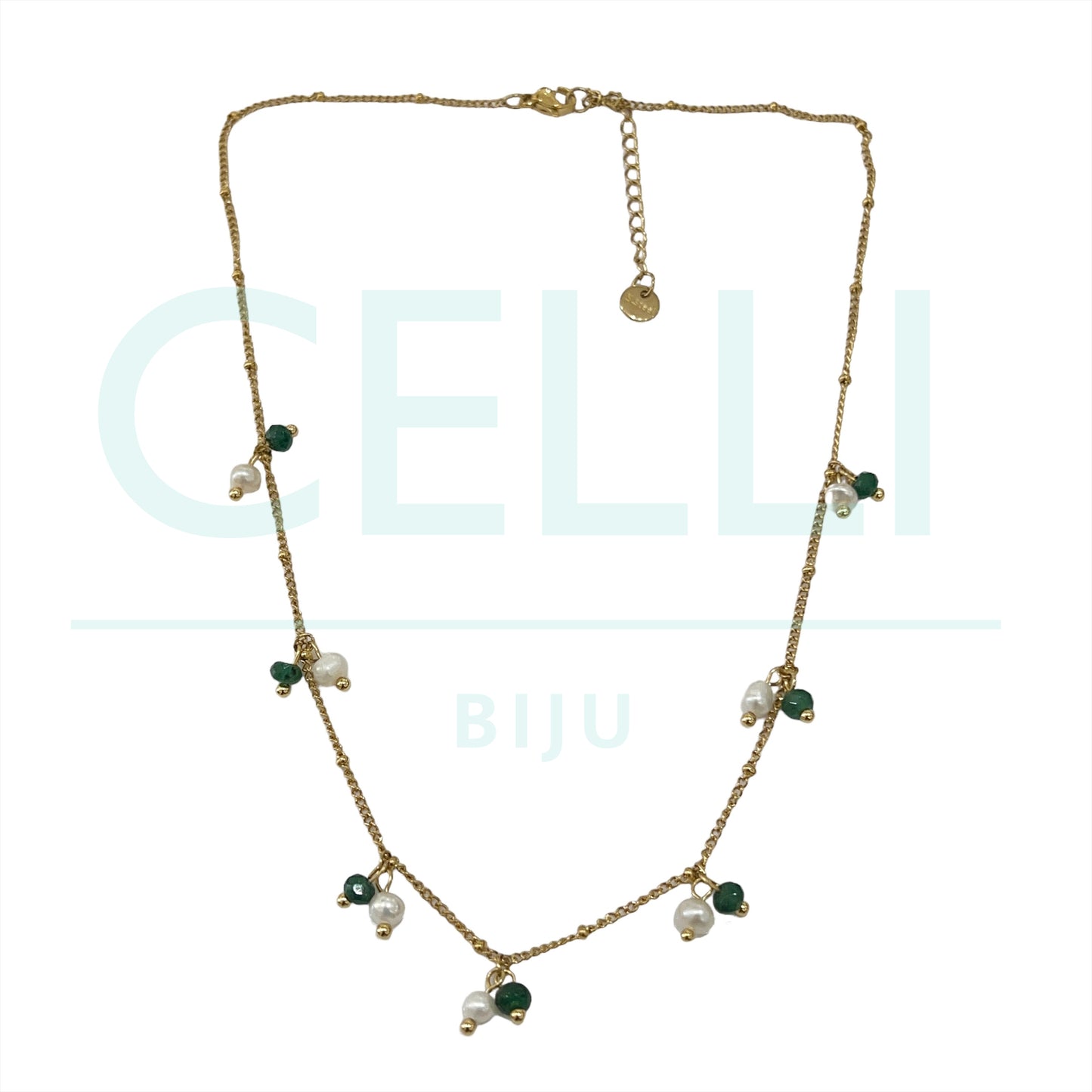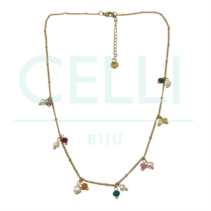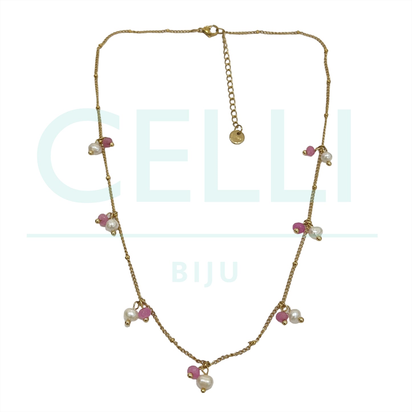 Colar de Aço com pérolas de agua doce e pedras naturais facetados
